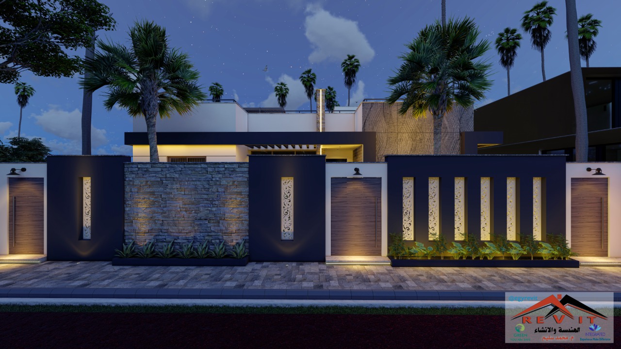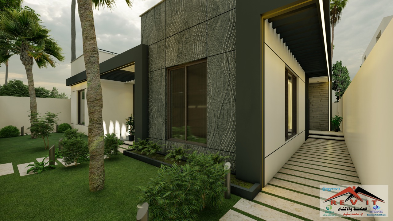 تصميم فيلا مودرن دور واحد رائع مميز بتكلفة منخفضة وقابلية للتنفيذ ، مزودة بمجلسي للرجال والنساءطعام مشترك وبيارة وخزان خارجي،يأتي مع التصميم جميع التصميمات المعمارية و الانشائية والالكتروميكانيكية و حصر كميات العظم كما أن التصميم به سماحية للتعديل حسب الحاجه أو حسب أبعاد الأرض بأسعار مميزة جدا و خدمات التصميم الداخلي بأسعار لا تقبل المنافسة وبأعلى جودة ممكنة.