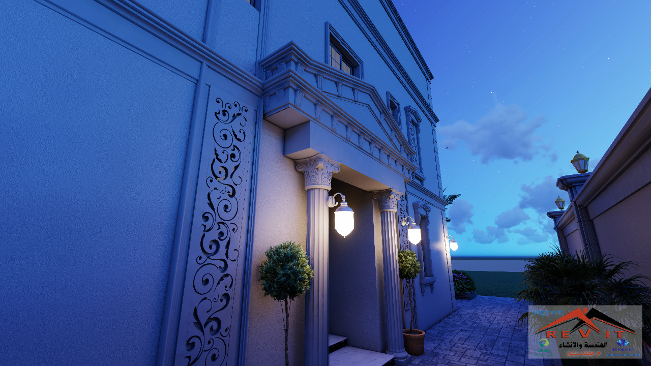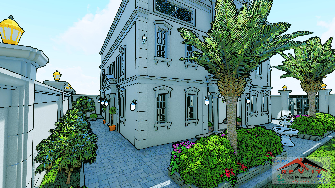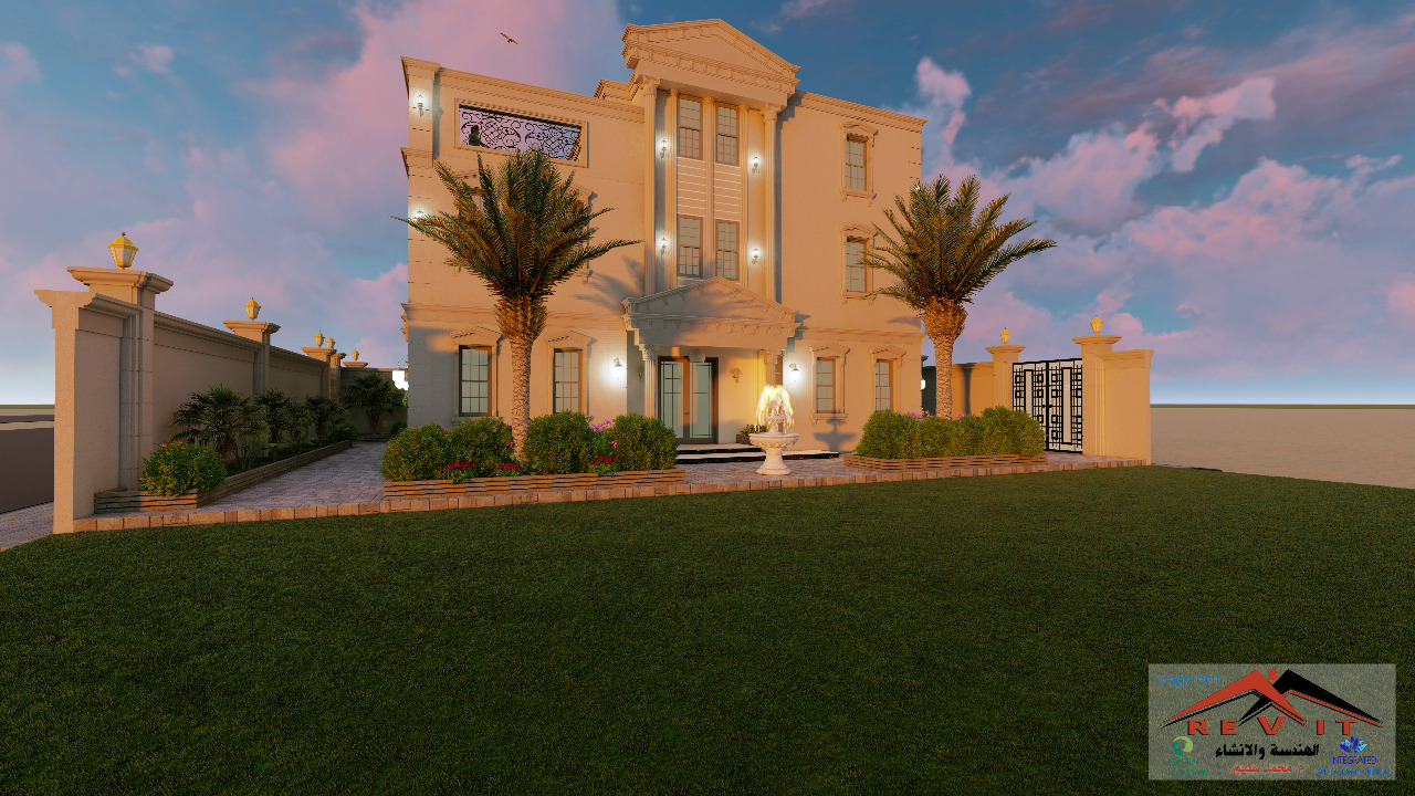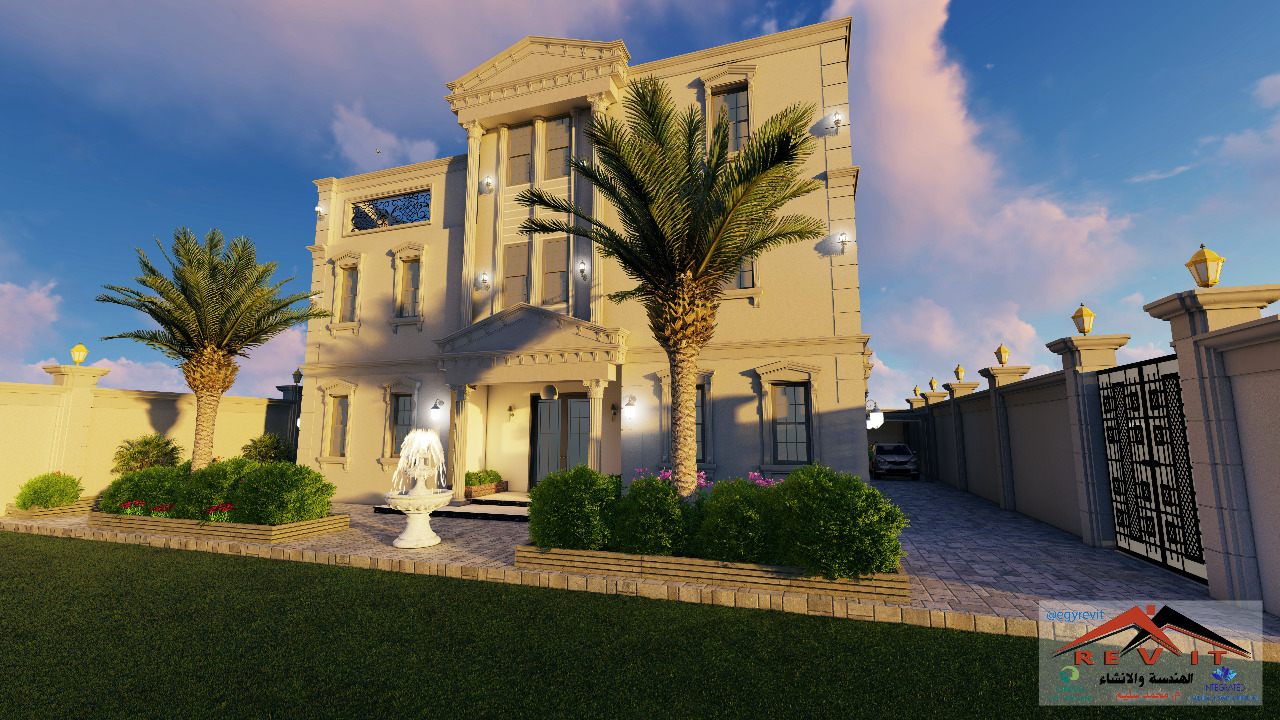 تصميم كلاسيكي خرافي لفيلا دورين وملحق يعطيك الشعور بإقتناء تحفة معمارية فنية ، الفيلا بها مجلسي للرجال والنساء وجلسة عائلية مشتركة ونافورة وجراج داخلي لسيارتك،يأتي مع التصميم جميع التصميمات المعمارية و الانشائية والالكتروميكانيكية و حصر كميات العظم كما أن التصميم به سماحية للتعديل حسب الحاجه أو حسب أبعاد الأرض بأسعار مميزة جدا و خدمات التصميم الداخلي بأسعار لا تقبل المنافسة وبأعلى جودة ممكنة.