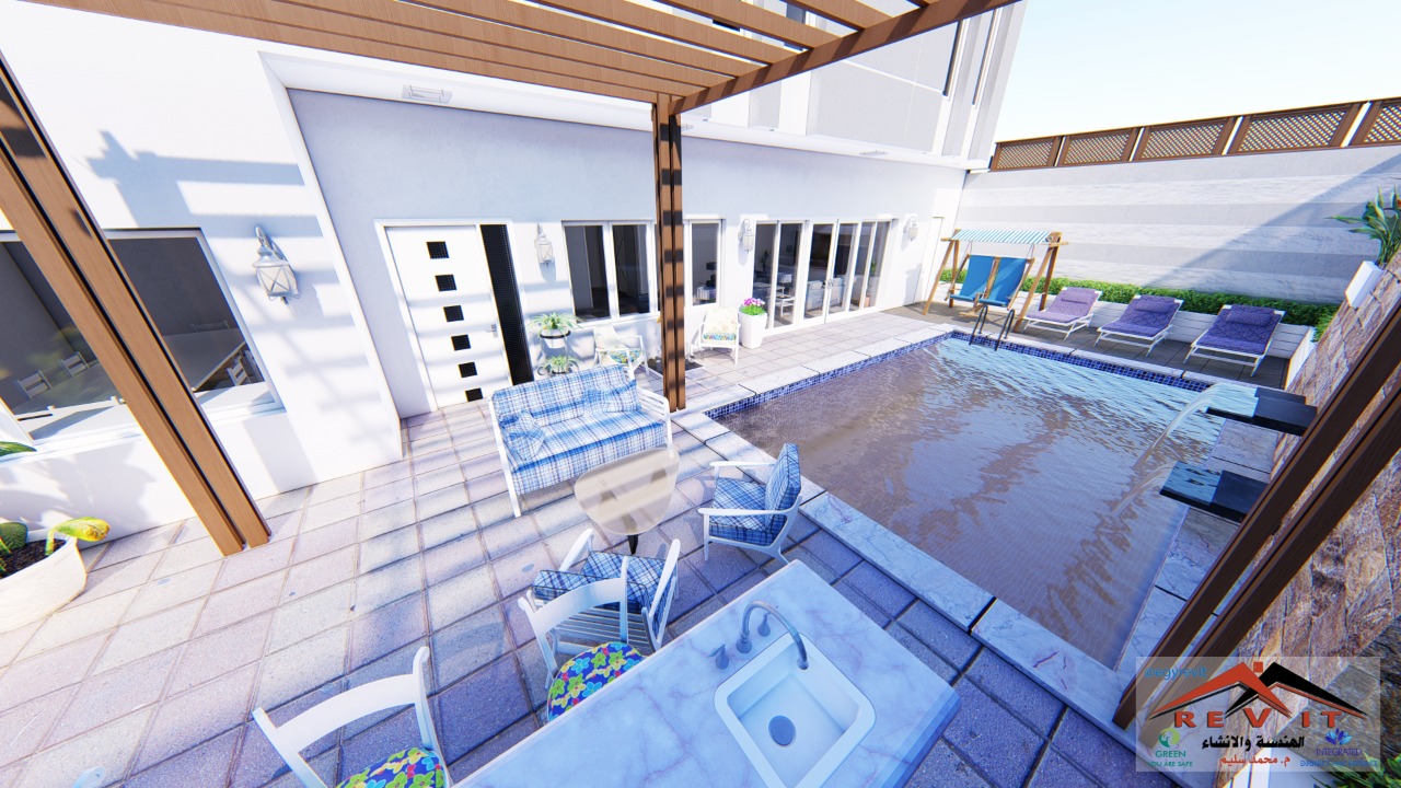 تصميم مميز عصري لفيلا سكنية مكونه من دورين وملحق على الطراز العصري (مودرن) بها مجلسي للرجال وبها مستودع خارجي ومسبح داخلي ومصعد داخلي وغرفة العاب اطفال و جلسة عائلية مشتركة ، يأتي مع التصميم جميع التصميمات المعمارية و الانشائية والالكتروميكانيكية و حصر كميات العظم كما أن التصميم به سماحية للتعديل حسب الحاجه أو حسب أبعاد الأرض بأسعار مميزة جدا و خدمات التصميم الداخلي بأسعار لا تقبل المنافسة وبأعلى جودة ممكنة.