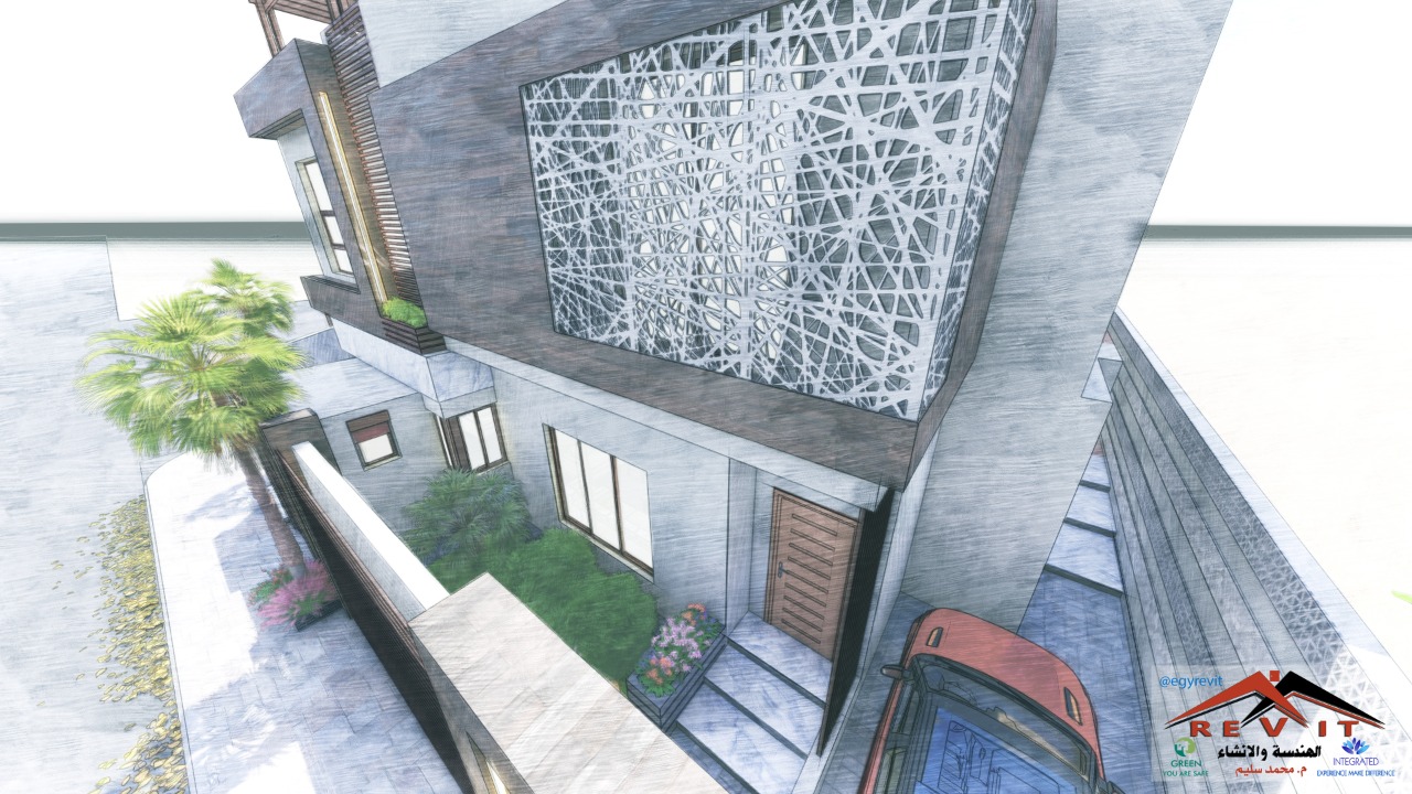 نموذج لاستغلال المساحات حيث انه تم توفير فيلتين و شقة في الملحق على ارض مساحتها 500 متر مسطح فقط أرض زاوية وهو تصميم مودرن كل فيلا تحتوي على دورين دور استقبال و دور نوم مع مستودع ومسبح داخلي ومصعد داخلي ، يأتي مع التصميم جميع التصميمات المعمارية و الانشائية والالكتروميكانيكية و حصر كميات العظم كما أن التصميم به سماحية للتعديل حسب الحاجه أو حسب أبعاد الأرض بأسعار مميزة جدا و خدمات التصميم الداخلي بأسعار لا تقبل المنافسة وبأعلى جودة ممكنة.