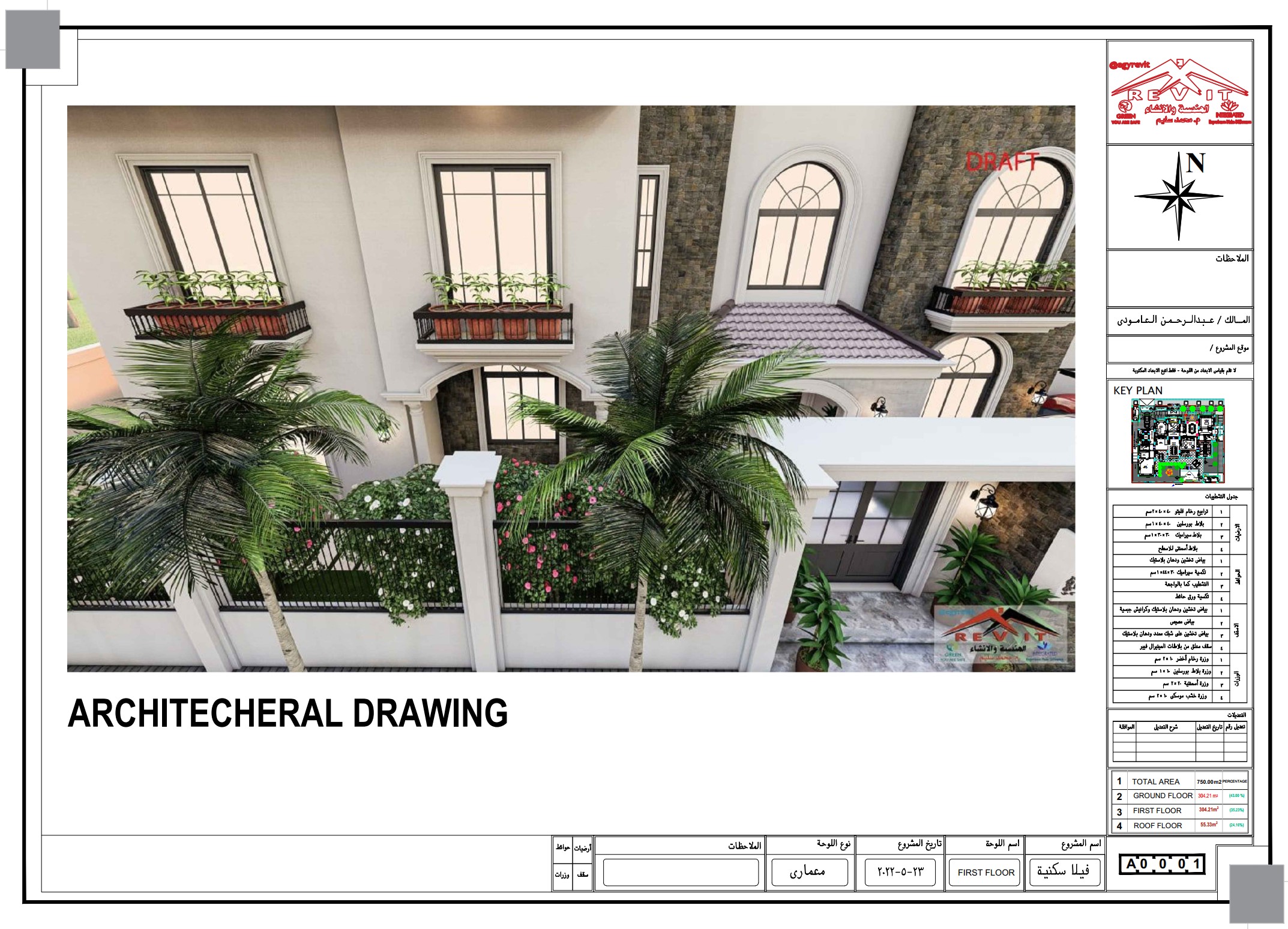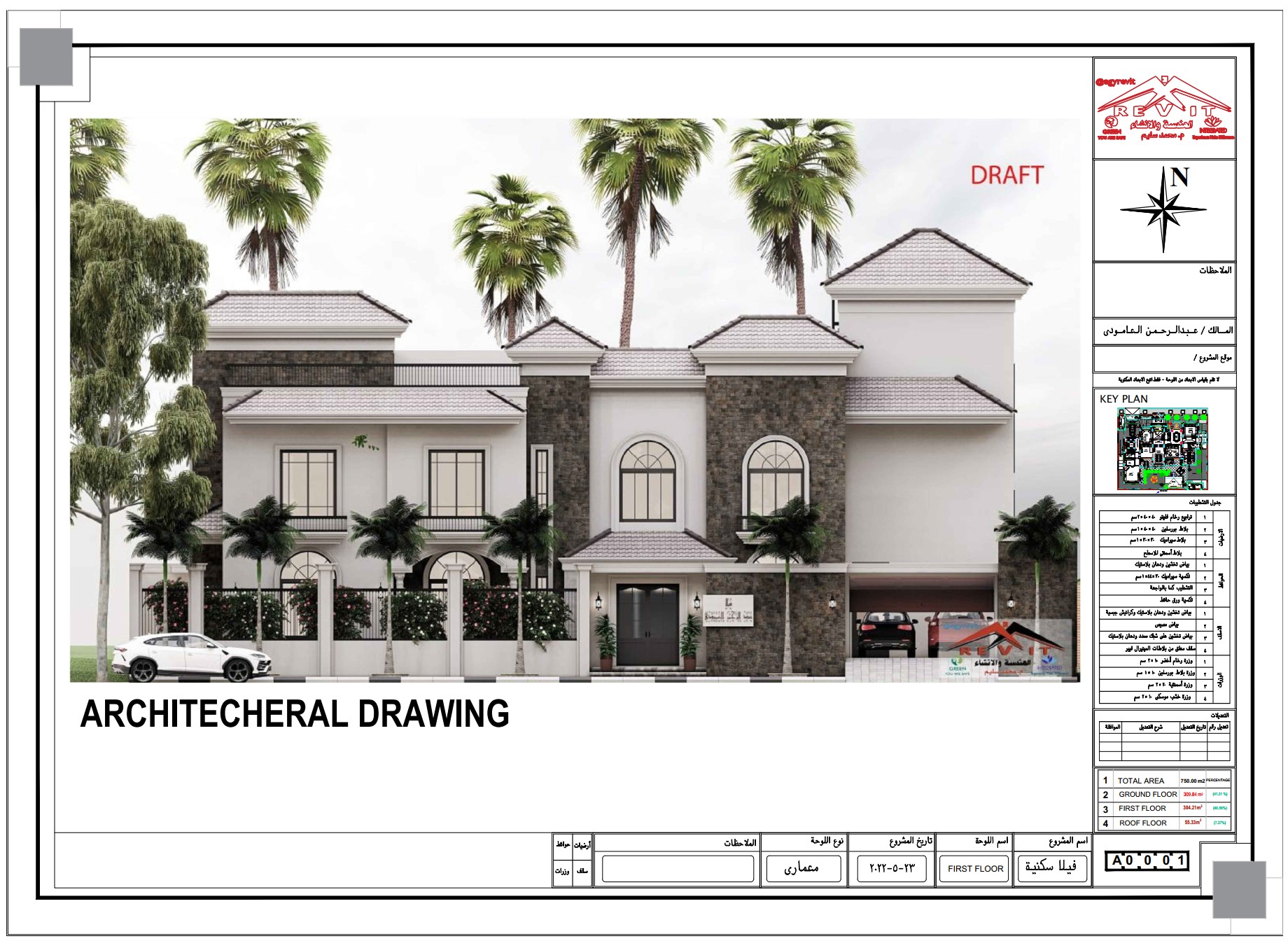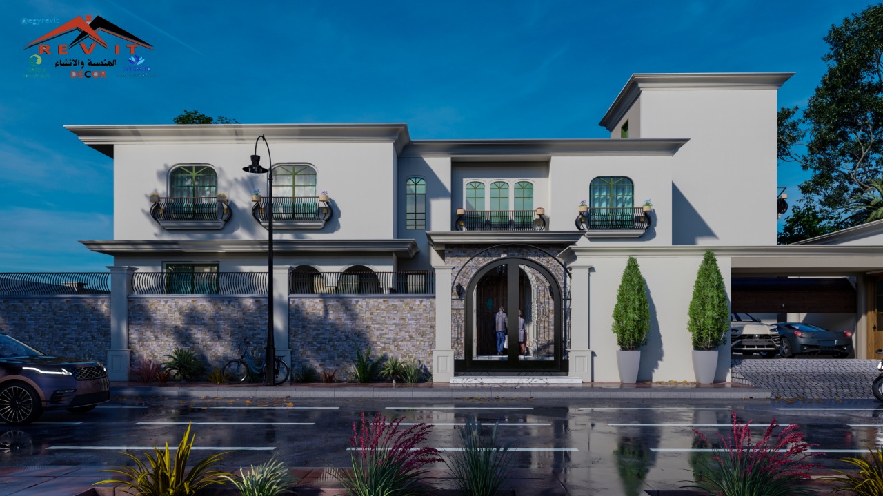 أحد تصاميم ايجي ريفيت المميزة و الأيقونية لفيلا سكنية دورين على مساحة 750متر مربع يتميز التصميم بجمال الواجهات و توزيع مثالي للمساحات الداخلية الذي يخدم جميع الاحتياجات يعطي احساس بالانشراح والامتداد البصري و يحافظ على الخصوصية في نفس الوقت بالاضافة مع دقة فصل الاستخدامات وتوزيع المساحات حيث تتكون في الدور الأرضي من مجلس رجال مع خدماته بمدخل مستقل و طعام رجال ويخدم النساء في نفس الوقت و مدخل عائلي ببهو و مجلس نساء وصالة معيشة مفتوحة بها جلسة و طعام عائلي و مطبخ مفتوح على الصالة واطلالات على الحديقة الخارجية لالضافة الى المطبخ الواسع العملي و المستودع والخادمة و الغسيل والدرج بمدخل خاص ومنفصل مع المصعد و مسبح مع الحديقة الخلفية كل هذا مع الغرفة الزجاجية الخلفية المميزة جدا و غرفة سائق بمدخل مستقل من الشارع وفي الدور الأول علوي ثلاث غرف نوم لكل غرفه حمامها الخاص منهم غرفة النوم الرئيسية التي تحتوي على غرفة ملابس واسعة جدا و بوفيه خدمة والصالة العائلية والمكتب المميز و غرفة الغسيل جميع الفراغات لها اطلالات مميزه ؛ تعتز ايجي ريفيت بهذا التصميم اعتزازا خاصا جدا حيث أنه لعميل مميز جدا ويقع المشروع في أرقى أحياء الرياض بالمملكة العربية السعودية ،يأتي مع التصميم جميع التصميمات المعمارية و الانشائية والالكتروميكانيكية و حصر كميات العظم كما أن التصميم به سماحية للتعديل حسب الحاجه أو حسب أبعاد الأرض بأسعار مميزة جدا و خدمات التصميم الداخلي بأسعار لا تقبل المنافسة وبأعلى جودة ممكنة.